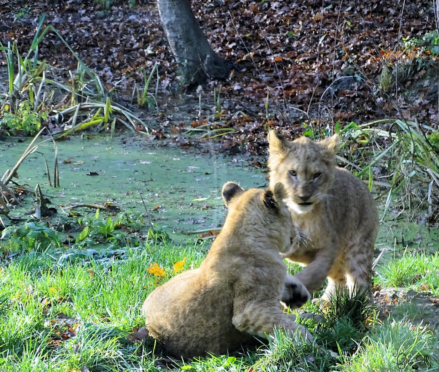 Er zijn weer leeuwenwelpjes in Gaia Zoo half oktober ,na 6 weken laten ze zich voor het eerst buiten zien